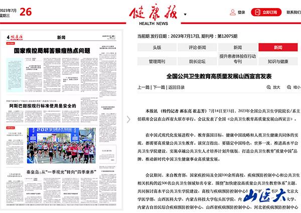 本報訊 (特約記者 郝東亮 崔志芳)7月14日至15日,2023年全國公共衛(wèi)生學(xué)院院長/系主任聯(lián)席會議在山西省太原市舉行。會議發(fā)表了全國《公共衛(wèi)生教育高質(zhì)量發(fā)展山西宣言》。