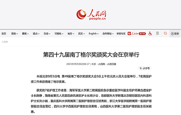 人民網北京9月5日電 第49屆南丁格爾獎頒獎大會5日上午在北京人民大會堂舉行,7名我國護理工作者獲得南丁格爾獎章。