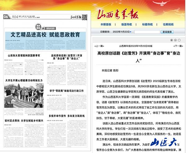 接下來,話劇《趙雪芳》還將繼續大力弘揚“雪芳精神”,教育引導山醫學子傳承“雪芳精神”、踐行新醫德要求,努力成長為“趙雪芳式”的人民好醫生和健康守護者。