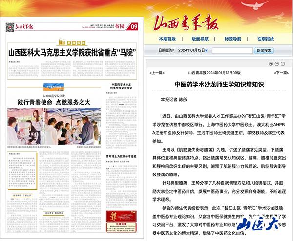 參會的師生代表紛紛表示,此次 “智匯山醫(yī)·青年匯”學(xué)術(shù)沙龍既涵蓋中醫(yī)藥專業(yè)理論知識,又富含中醫(yī)保健養(yǎng)生內(nèi)容,為廣大師生提供了學(xué)習(xí)交流平臺,激發(fā)了大家對中醫(yī)藥專業(yè)知識與技能的學(xué)習(xí)熱情,進(jìn)一步感受中醫(yī)藥文化的博大精深,增強了中醫(yī)藥文化自信。