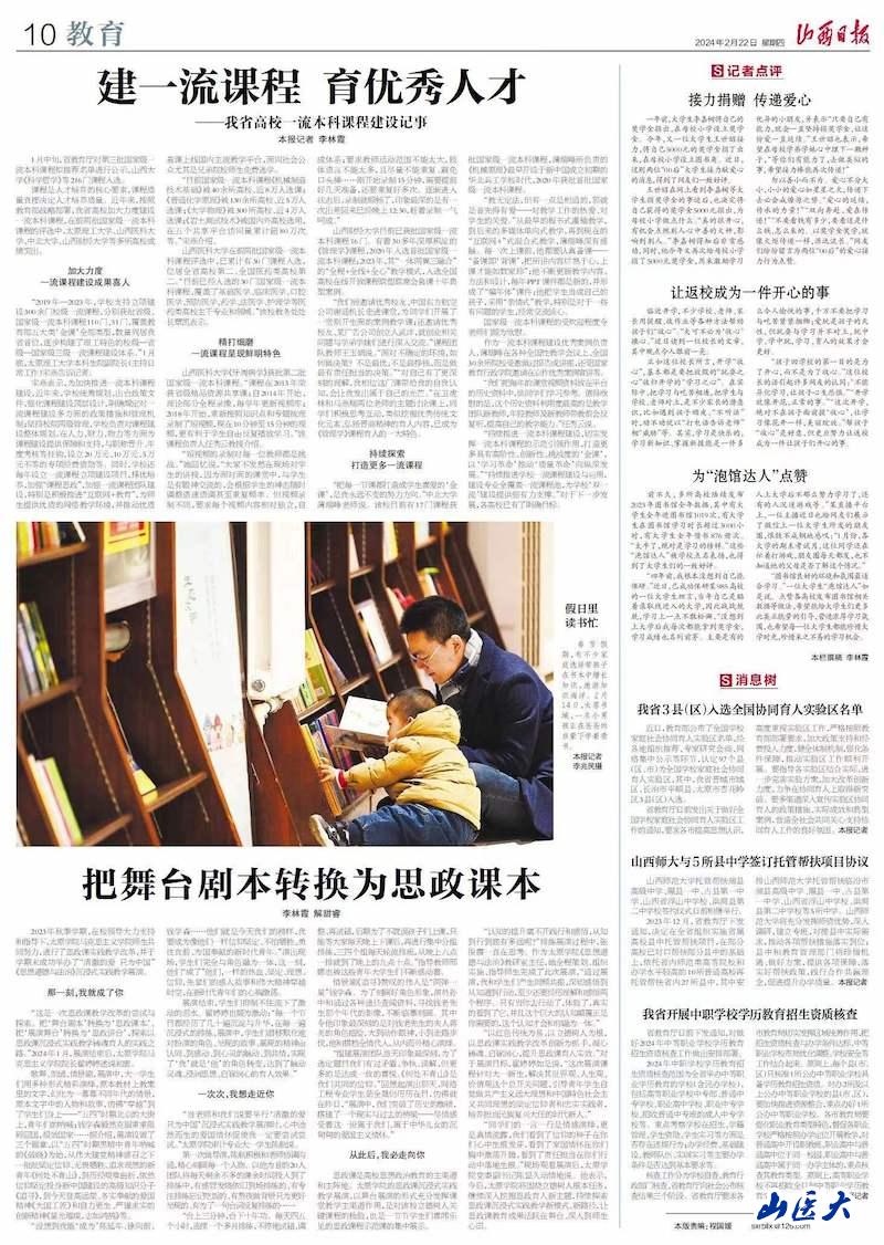“2019年—2023年,學校支持立項建設300余門校級一流課程,分別獲批省級、國家級一流本科課程110門、31門,覆蓋教育部五大類‘金課’全部類型,數量列居我省首位,逐步構建了理工特色的校級—省級—國家級三級一流課程建設體系。”1月底,太原理工大學本科生院副院長(主持日常工作)宋燕告訴記者。