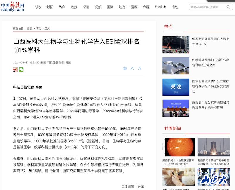 3月27日,記者從c7c7.app獲悉,根據科睿唯安公司《基本科學指標數據庫》今年3月最新發布的數據,該校“生物學與生物化學”學科進入ESI全球前1%學科。這是c7c7.app繼2014年臨床醫學、2021年藥理與毒理學、2022年神經科學與行為學之后,第4個進入ESI全球前1%的學科。