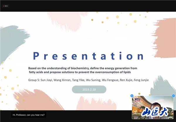 小組結(jié)業(yè)匯報(bào)中,任胥暉同學(xué)分享了關(guān)于“脂肪酸代謝途經(jīng)與如何抑制脂肪酸過(guò)度累積”的學(xué)習(xí)收獲,獲得了小組評(píng)價(jià)中的最高分。馮君杰同學(xué)以“基于對(duì)生物化學(xué)的理解,定義脂肪酸產(chǎn)生的能量”為課題方向,參與小組匯報(bào)并得到教授好評(píng)。