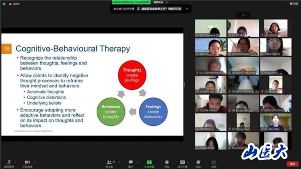人文社會科學院的劉怡然同學和藥學院的劉易陽同學參加了“臨床心理學在線課程”,在專題講座中,新加坡國立大學的資深教授以 臨床心理學導論、人格障礙與精神分裂癥、幼兒情緒表達規則的理解與運用、神經發育及神經退行性疾病和心理咨詢與治療中的科學與藝術為主題介紹臨床心理學領域的相關知識與最新研究成果。在小組結業匯報環節,劉易陽同學分享了“影響治療關系的因素——臨床心理學家如何培養這種能力”內容;劉怡然同學擔任組長,以情緒調節為例,闡述了情緒與文化的關系及情緒的文化差異,獲得優秀學員稱號。