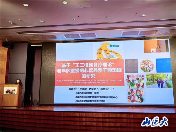 報告中,基于韓世范院長的“護士處方權”和“食療護理”兩個代表作領域,兩位代表分別交流了“院校協同下我國內地未來APN進階式處方培訓課程方案的初步構建”“基于‘家庭護士食療理論’的慢性病地域化健康膳食模式構建”“基于‘正三棱錐食療理論’的老年多重慢病非營養素干預策略的研究”“富含皂苷、黃酮和生物堿三類有效成分的物質對自身免疫性疾病細胞因子的調節作用:一項基于動物實驗的系統評價和Meta分析”“藥食同源物質對非酒精性脂肪肝患者血脂、血糖及肝功能影響的系統評價和Meta分析”五項研究成果,系列成果內容獲得線上、線下專家和同行們的一致好評,尤其是課題組創新性構建的“三棱錐家庭護士理論模型”,引來全場聚焦,得到與會者的廣泛關注。