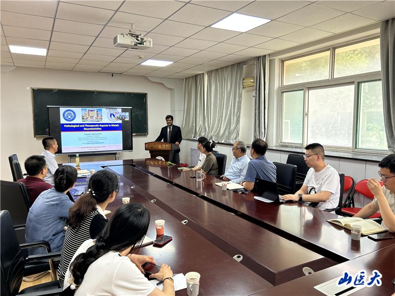 與會師生就金屬神經(jīng)毒性及其相關(guān)研究,與Touqeer Ahmed教授進行了深入討論交流,報告會現(xiàn)場氣氛活躍,思想火花迸涌,對助力高水平公共衛(wèi)生學(xué)院建設(shè)起到了積極促進作用。