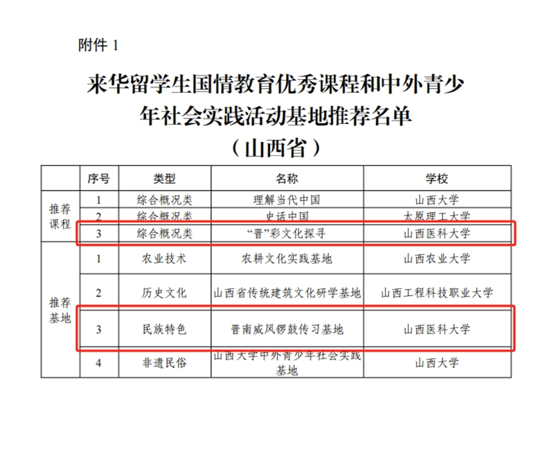 為深入貫徹習近平總書記關于教育的重要論述精神,加快落實中央教育工作領導小組秘書組印發的《加強來華留學管理工作方案》,受教育部國際合作與交流司委托,中國教育國際交流協會面向全國高校開展2024年度來華留學生中國國情教育優秀課程和中外青少年社會實踐活動基地征集工作,最終共確立111門課程和115個基地。我校申報的“‘晉’彩文化探尋”國情教育優秀課程和“晉南威風鑼鼓傳習基地”社會實踐活動基地雙雙獲批立項。