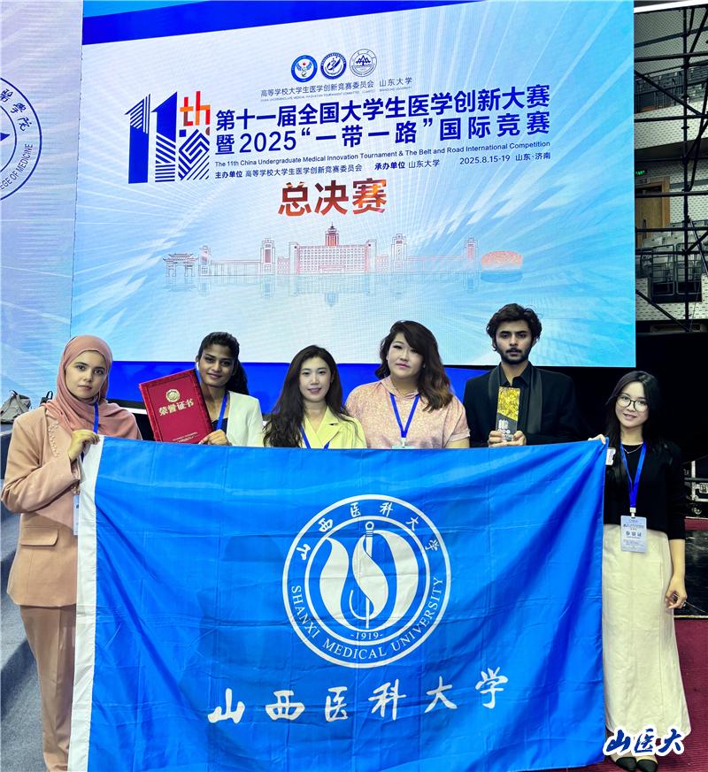 8月15日至19日,第十一屆全國大學生醫學創新大賽暨2025“一帶一路”國際競賽總決賽在山東大學舉辦。我校兩支國際學生隊伍首次參賽并斬獲佳績,一舉奪得金獎1項、銅獎1項,取得歷史性突破。