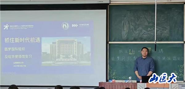 為進一步推進高水平公共衛(wèi)生學院建設,培養(yǎng)高層次國際化人才,拓展學生全球化視野和國際化思維,3月27日下午,公共衛(wèi)生學院于中都校區(qū)至真樓202室舉辦了以“抓住新時代機遇 圓夢國際組織及駐華使領館實習”為主題的高層次國際化人才培養(yǎng)創(chuàng)新實踐項目宣講活動。活動邀請了中科浩博國際教育科技(北京)有限公司高校創(chuàng)新合作部項目主管申志昌、原中國駐墨爾本總領事館副領事樊博雅主講,中科浩博國際教育科技(北京)有限公司項目總監(jiān)李玥琛、公共衛(wèi)生學院黨委書記張志紅、國際教育學院副院長于曉霞、國際教育學院項目管理科張迪、公共衛(wèi)生學院分團委書記張瑾和2022級預防醫(yī)學專業(yè)全體學生參加。