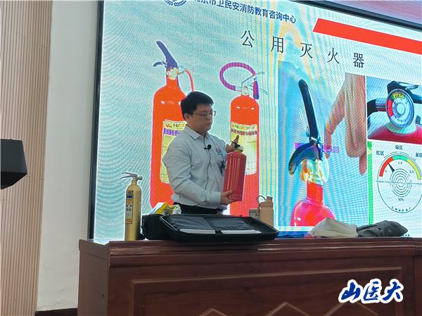 講解及演習過程中,武裝保衛部李學智老師從理論知識、火災應對等正反實例方面教育大家必須提高消防安全意識,提升消防安全應對能力,講解形象生動,貼近生活,富有深度,引人思考。