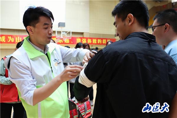 楊永杰護士長對螢火蟲公益志愿團隊進行了介紹,通過數據分析和案例展示,強調了及時的急救處置對心臟驟停患者的重要性,以“評、按、通、果”四字歸納了心肺復蘇的操作步驟。針對運動康復的專業特殊性,田冬老師具體講解了大學生常見外傷處理理論和技術,豐富了運康學子的專業知識。