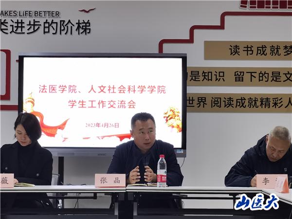 為深入開展學(xué)習(xí)貫徹習(xí)近平新時代中國特色社會主義思想主題教育,凝聚奮進力量,堅定實干信心,4月26日上午,法醫(yī)學(xué)院、人文社會科學(xué)學(xué)院召開學(xué)生工作交流會。校學(xué)生工作部部長張晶、法醫(yī)學(xué)院黨總支副書記李濟、人文社會科學(xué)學(xué)院黨總支書記李薇以及兩個學(xué)院的全體輔導(dǎo)員、分團委負責人參加了會議。