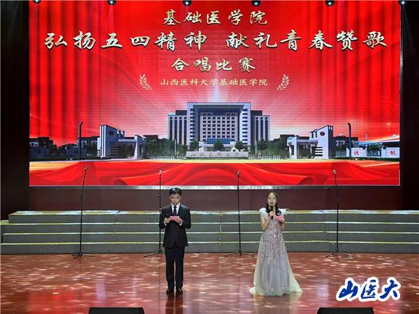 為深入學習貫徹黨的二十大精神,引導廣大青年學生弘揚五四精神,5月10日,基礎醫(yī)學院在大學生劇場舉辦“弘揚五四精神,獻禮青春贊歌”合唱比賽。校學生工作部副部長楊潔、基礎醫(yī)學院副院長劉繼斌、校工會委員會:紜⑿M盼鐸、校黨委宣傳部劉志芬和國網山西超高壓變電公司黨建部團委書記張曉玲擔任評委,基礎醫(yī)學院黨委書記王卓、黨委副書記劉霞和2022級思想政治輔導員出席此次活動。