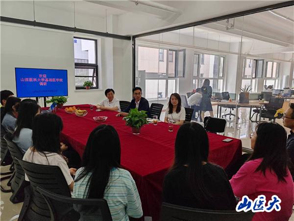 為加強(qiáng)與教學(xué)基地交流,推動(dòng)落實(shí)雙導(dǎo)師制與產(chǎn)教融合,深入了解生物制藥專業(yè)學(xué)生實(shí)習(xí)情況,5月19日,基礎(chǔ)醫(yī)學(xué)院副院長劉繼斌、生物制藥專業(yè)負(fù)責(zé)人孫要軍、生物制藥教研室教師一行5人赴教學(xué)基地山西遠(yuǎn)揚(yáng)生物技術(shù)有限公司進(jìn)行調(diào)研,遠(yuǎn)揚(yáng)公司董事長尹航、畢業(yè)實(shí)習(xí)指導(dǎo)負(fù)責(zé)人張浩磊公司位于晉中開發(fā)區(qū)大學(xué)城產(chǎn)業(yè)園區(qū)山西智慧科技城C區(qū)。尹航帶領(lǐng)調(diào)研小組參觀了公司生產(chǎn)線、學(xué)生實(shí)習(xí)環(huán)境、無菌車間等硬件設(shè)施召開了座談會(huì)。他指出,實(shí)習(xí)生來公司后首先要熟悉生產(chǎn)規(guī)章制度、掌握實(shí)習(xí)安全知識(shí),在了解公司基本情況后,由尹航與張浩磊老師共同指導(dǎo),以實(shí)際生產(chǎn)所需為導(dǎo)向,開展畢業(yè)實(shí)習(xí)并確定論文題目方向,在學(xué)生實(shí)踐的同時(shí),查閱相關(guān)資料文獻(xiàn)后進(jìn)行畢業(yè)論文的撰寫。在培養(yǎng)初期,可選派實(shí)習(xí)生前往企業(yè)進(jìn)行短期實(shí)訓(xùn),提前了解企業(yè)生產(chǎn)實(shí)習(xí)內(nèi)容,明確學(xué)習(xí)任務(wù),規(guī)劃自身發(fā)展。