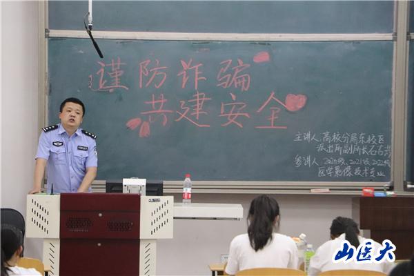 近年來,電信網絡詐騙犯罪屢有發生,為增強學生的防騙意識,從源頭上預防電信詐騙,更好地保護學生的財產和人身安全。5月18日19時,晉中市公安局高校分局東校區派出所副所長石吉洪警官受邀為醫學影像學院2018級-2022級本科生開展了“謹防詐騙,共建安全”專題講座。