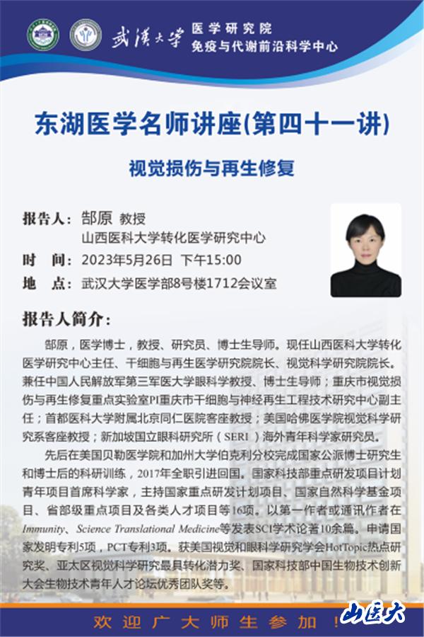 受武漢大學(xué)醫(yī)學(xué)研究院邀請,我校轉(zhuǎn)化醫(yī)學(xué)研究中心郜原教授前往武漢大學(xué)訪問并開展學(xué)術(shù)交流。