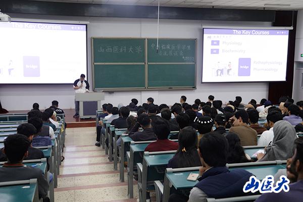 會上,許曦、朱沙璽、張耀武三位來自第二臨床醫(yī)學(xué)院的優(yōu)秀學(xué)生代表分別從自身經(jīng)歷出發(fā)分享了利用互聯(lián)網(wǎng)資源獲取專業(yè)知識、臨床實(shí)踐學(xué)習(xí)以及大學(xué)課余生活相關(guān)內(nèi)容,流利的英語口語表達(dá)、深入淺出的講述受到了參會留學(xué)生的一致好評。