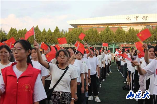 跑步結束后,同學們陸續回到操場中央,在合唱團成員的引領下齊聲高唱歌曲《我和我的祖國》。“拳拳愛國情,深深祝福意。”嘹亮的歌聲飽含了同學們對祖國的熱愛之情,唱響了一代又一代山醫人濃濃的愛國情懷。歡呼聲、歡笑聲和音樂聲交織在一起,現場活動的氣氛推向了高潮。