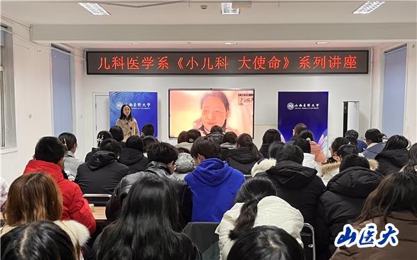1月11日下午,兒科醫學系“小兒科 大使命”系列講座之《兒科醫生的成長之路》在迎澤校區采用線上線下相結合的方式舉行。講座由兒科醫學系研究生黨支部承辦,特邀上海交通大學醫學院附屬瑞金醫院兒內科副主任醫師、醫學博士吳群主講,研究生于成皓、蔣勁嵩副講,兒科醫學系黨總支副書記張曉林、碩士生導師蔚京京、思想政治輔導員閻沖、本科生黨支部書記劉斌、兒科醫學系部分研究生及本科生50余人參加現場活動。