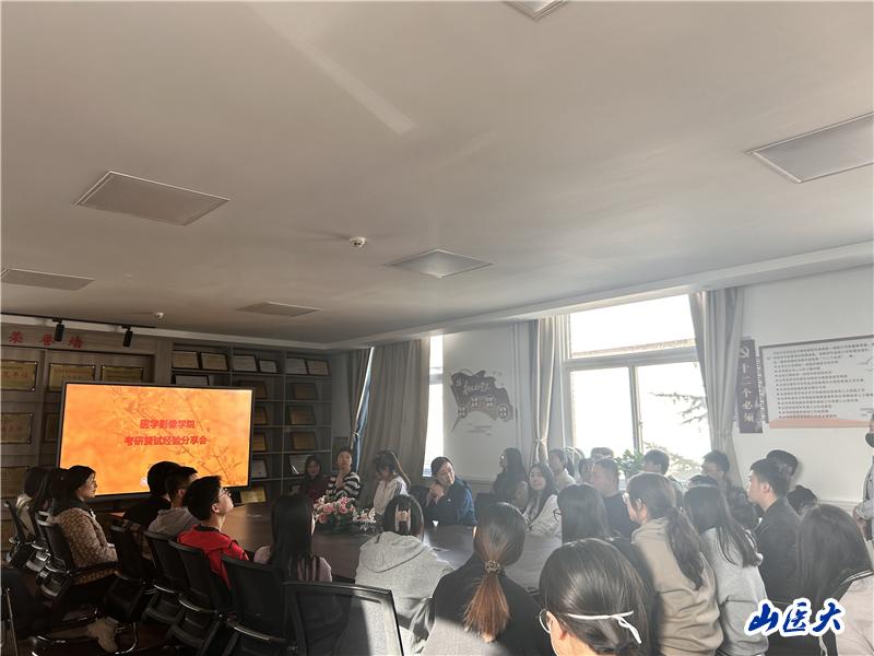 3月22日下午,醫學影像學院在迎澤校區圖書館南側會議室舉辦了考研復試經驗分享會。學院黨總支副書記郭曄,畢業年級思想政治輔導員姚蘇霞、梁建秀,5位2023級研究生以及報考醫學影像學院的本科畢業年級考研學生共40余人參加了分享會。