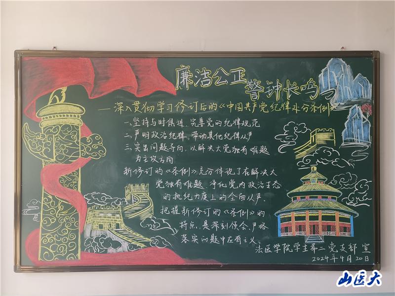 為加強基層文化陣地建設,豐富校園文化內涵,法醫學院分團委在院黨總支的引導支持下,于今年4月開始開展法醫學院“小陣地大課堂”黑板報文化建設活動,通過接地氣、聚人氣,為全院師生提供學習成長平臺。