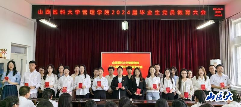 會議在莊嚴的國歌聲中拉開序幕,隨后,與會老師為全體畢業(yè)生黨員佩戴黨員黨徽、贈送《中國共產(chǎn)黨章程》 。畢業(yè)生黨員代表王燦、趙子豪分別作了情感真摯的發(fā)言,感恩母校的悉心栽培和老師們的諄諄教誨,表示在今后的工作學習生活中將始終秉持“醫(yī)理博精 德能高邃”的校訓,在學思踐悟中堅定理想信念,在奮發(fā)有為中踐行初心使命,為中國式現(xiàn)代化建設貢獻青春力量。