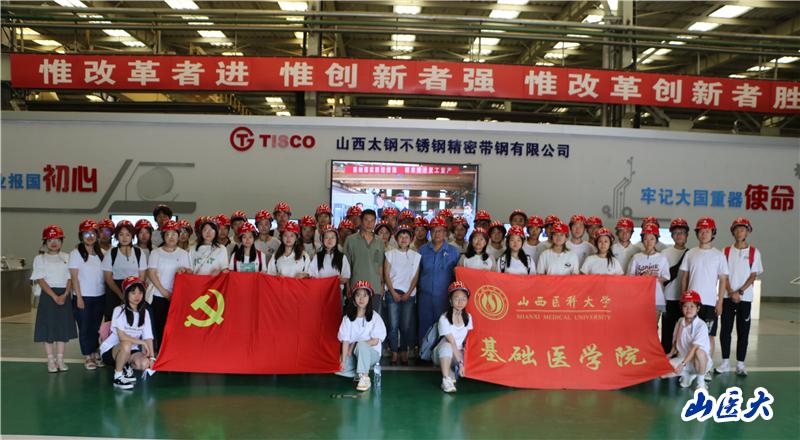 6月26日上午,基礎醫學院組織師生赴太鋼不銹鋼精密鋼帶有限公司開展主題黨日活動。基礎醫學院黨委副書記劉霞、分團委負責人呂敏、學生黨支部黨員參加了活動。