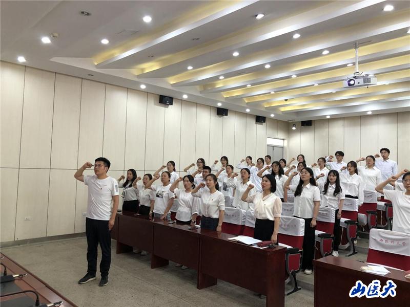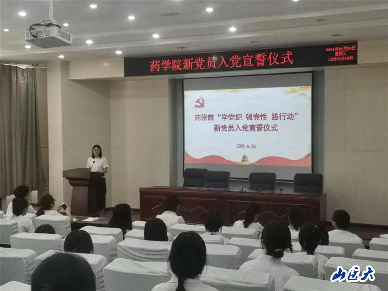 6月26日下午,藥學(xué)院在中都校區(qū)明德樓報告廳舉行新黨員入黨宣誓儀式。學(xué)院黨委書記李薇、黨支部書記、輔導(dǎo)員和新發(fā)展黨員50余人參加。活動由藥學(xué)院黨委委員雷寰宇主持。