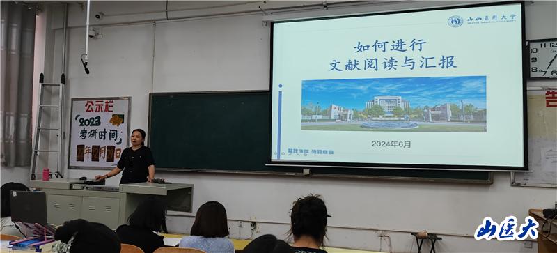 大賽分為三個階段。第一階段為組織宣傳和報名階段,共有14支來自全校各專業的代表隊報名參賽。第二階段為專家指導,邀請公共衛生學院黨委書記張志紅教授于6月17日作了題為《如何進行文獻閱讀與匯報》的賽前指導講座,100余名師生聆聽了本次講座。賽前指導采用線上線上相結合的方式,幫助同學們深入了解文獻查閱的方法和匯報技巧,激發同學們的創新活力與創新潛能。