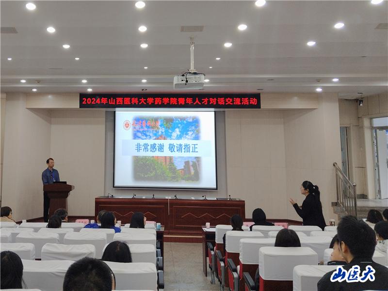 10月18日,由學(xué)校人才工作部和藥學(xué)院共同主辦的“人到山西好風(fēng)光,青年人才匯聚山醫(yī)”——藥學(xué)院青年人才對(duì)話交流活動(dòng)在中都校區(qū)舉行。人才工作部副部長(zhǎng)李軍、人事部副部長(zhǎng)尉志文、藥學(xué)院黨政班子成員和來(lái)自中國(guó)藥科大學(xué)、中國(guó)科學(xué)院上海藥物研究所、四川大學(xué)等9所國(guó)內(nèi)高校的優(yōu)秀青年博士及師生代表100余人參加了本次對(duì)話交流活動(dòng)。活動(dòng)由藥學(xué)院副院長(zhǎng)班樹榮主持。