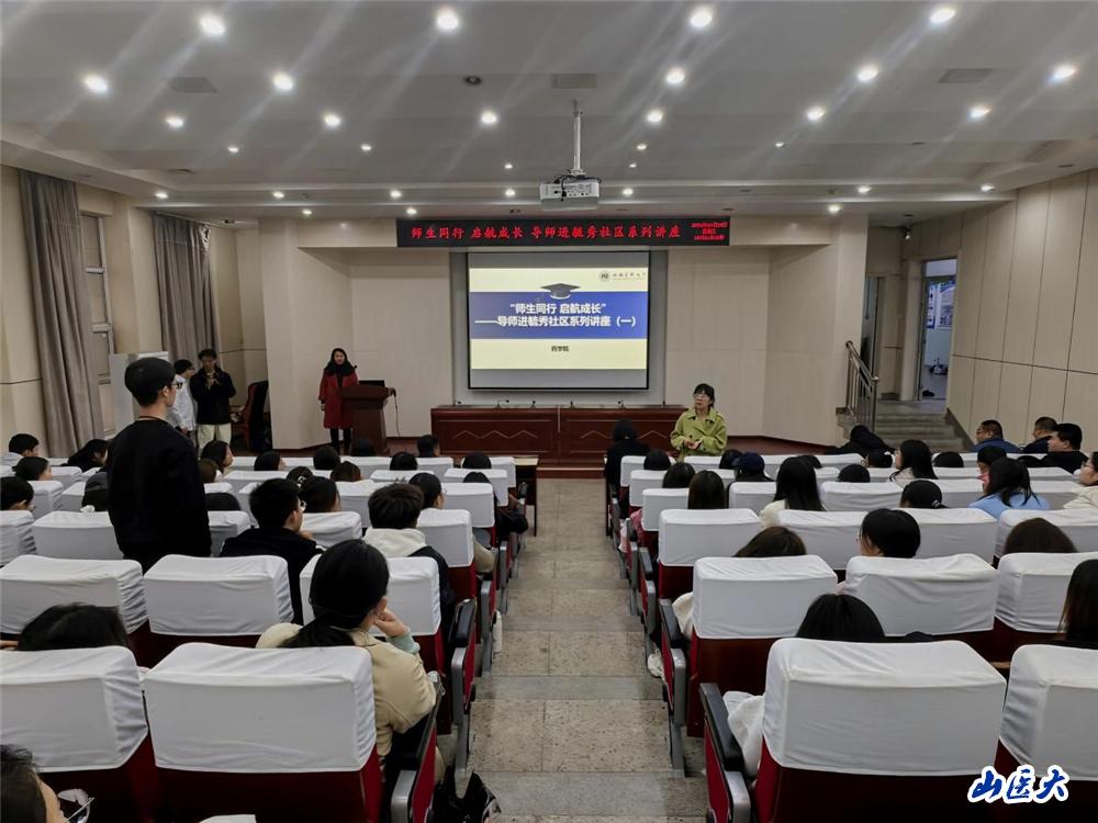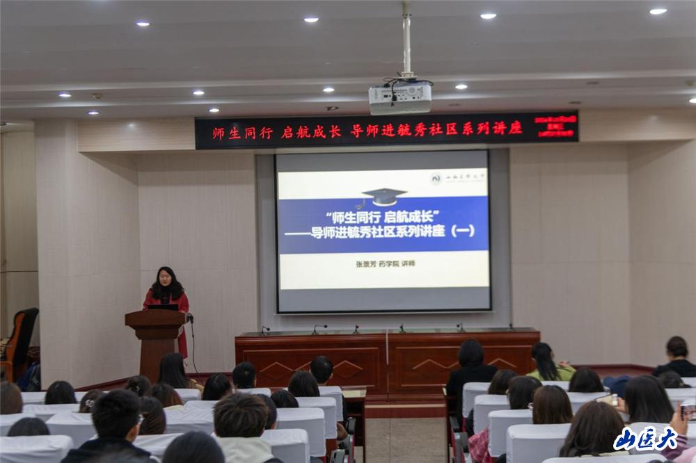 10月30日,由校團委、藥學院和毓秀社區共同主辦的“師生同行 啟航成長”----導師進毓秀社區系列講座第一講在中都校區明德樓舉辦。校團委副書記、毓秀社區長助理常彥民,校學生工作部副部長杜旭峰,藥學院黨委書記、毓慧A棟樓棟長李薇,藥學院副院長、毓慧A棟樓層長李云蘭,靈韻A棟樓層長張偉、藥學院分團委書記趙子瑞,宿舍導師代表張敏,輔導員代表崔春閣、王虹丹以及毓秀社區來自藥學院、法醫學院、醫學影像學院、人文社會科學學院的100余名學生參加了本次活動。