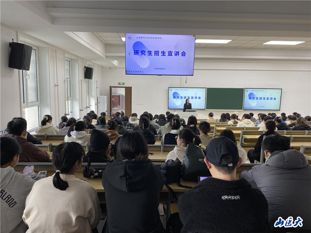 10月25日,口腔醫學院在迎澤校區舉辦2025年研究生招生宣講會。口腔醫學院黨委書記任秀云、副院長王興、歷屆成功考研的優秀學子及2020級本科應屆畢業生等140余人參加會議。
