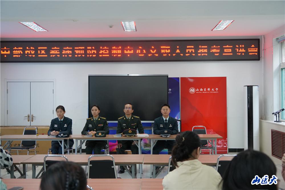 10月29日上午,我校公共衛(wèi)生學(xué)院在迎澤校區(qū)舉辦中部戰(zhàn)區(qū)疾病預(yù)防控制中心文職人員招考宣講會(huì)。中部戰(zhàn)區(qū)疾病預(yù)防控制中心一行四人、公共衛(wèi)生學(xué)院黨委副書(shū)記蔚鈺瓊、畢業(yè)班輔導(dǎo)員和2025屆畢業(yè)生等共80余人參加了宣講會(huì)。
