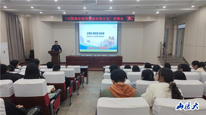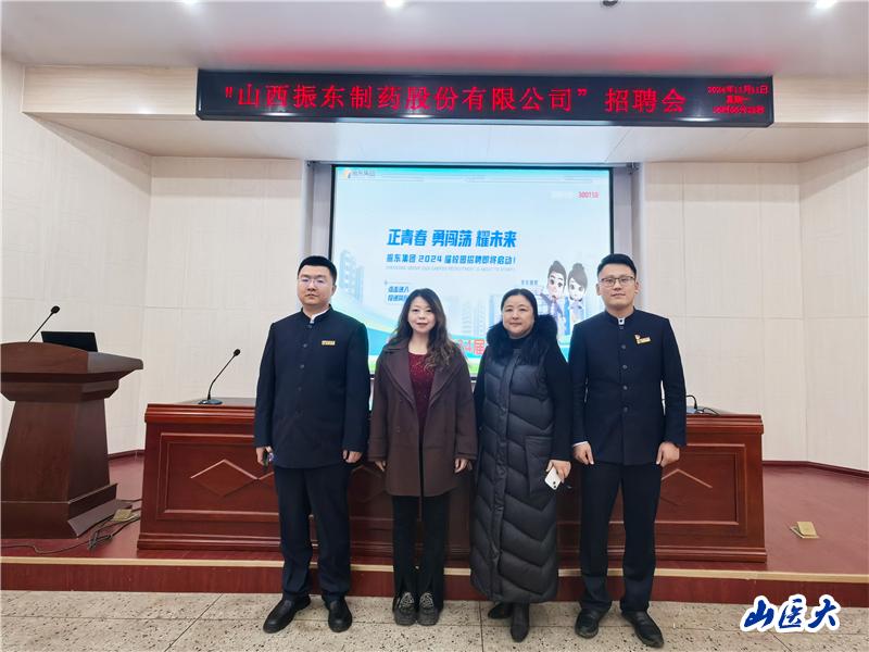 11月11日下午,藥學(xué)院在中都校區(qū)舉辦山西振東健康產(chǎn)業(yè)集團(tuán)專場(chǎng)招聘宣講會(huì)。振東健康產(chǎn)業(yè)集團(tuán)人力資源招聘代表苗經(jīng)理、辦公室主任石經(jīng)理、藥學(xué)院黨委副書記童玲、藥學(xué)院就業(yè)專員姜敏以及2025屆畢業(yè)生等70余人參加了招聘會(huì)。