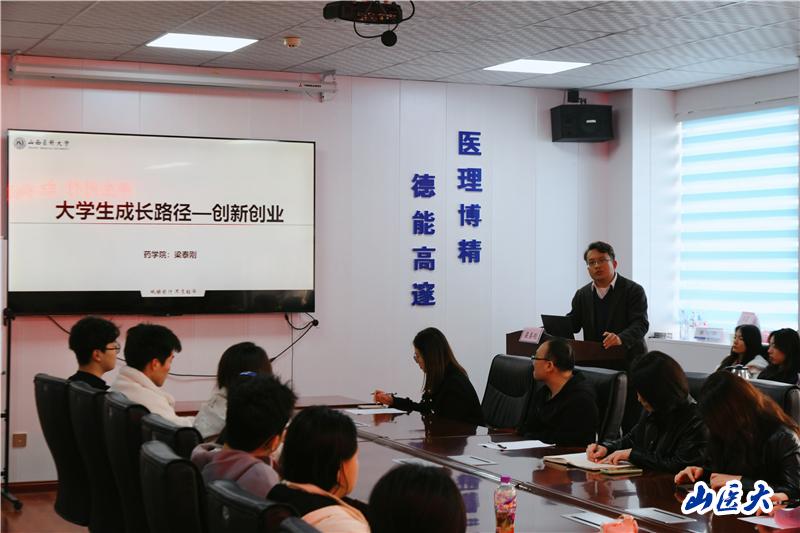 11月14日下午,藥學院在中都校區(qū)毓秀社區(qū)舉辦《大學生成長路徑--創(chuàng)新創(chuàng)業(yè)》講座。講座由藥學院副院長、毓慧A樓層長梁泰剛教授主講,藥學院黨委書記、毓慧A樓棟長李薇,藥學院黨委副書記童玲,醫(yī)學影像學院、靈韻A樓層長馮國勝,藥學院分團委書記趙子瑞、宿舍導師代表魏貝等師生代表八十余人參加。講座由藥學院輔導員雷寰宇主持。