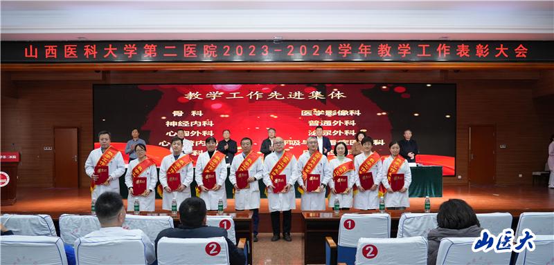12月19日,我校第二醫院召開2023—2024學年教學工作表彰大會,院黨委書記成曉龍,黨委副書記、院長趙斌,黨委副書記魏永紅,紀委書記王瑛,副院長董紅霖、牛金亮、李少剛出席會議,各黨支部書記、科主任、護士長及受表彰人員代表參加會議。會議由牛金亮主持。