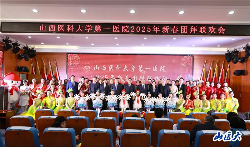 第一醫院黨委書記徐鈞在致辭中代表院領導班子向全院干部職工、離退休職工及家屬致以新春祝福。他表示,回首2024年,醫院始終堅持以人民健康為中心,聚焦三級公立醫院的責任和功能定位,優質醫療資源擴容下沉,開展無陪護病房試點,“國考”指標大幅提升,科研建設卓有成效,學科建設再攀高峰,高質量發展取得了新突破新進步。展望2025年,要堅持穩中求進工作總基調,深入實施健康中國和健康山西發展戰略,全面提升醫療服務能力,提高患者就醫滿意度,增強全體醫務人員職業榮譽感和歸屬感,全力打造有溫度的醫院。