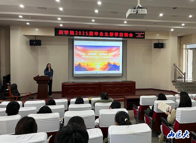 3月24日下午,我校藥學(xué)院在中都校區(qū)明德A一層報(bào)告廳舉辦了華潤雙鶴普藥事業(yè)部招聘宣講會,華潤雙鶴山西晉新雙鶴藥業(yè)有限責(zé)任公司總經(jīng)理靳勝利等企業(yè)代表、藥學(xué)院黨委副書記童玲、藥學(xué)院就業(yè)專員姜敏以及2025屆畢業(yè)生參加了此次招聘會。