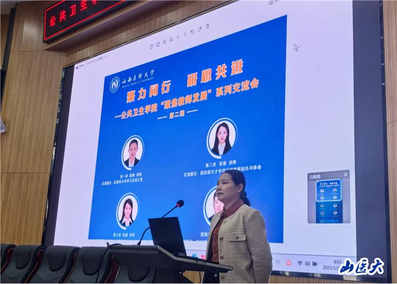 本次交流會聚焦“師資培育與職業發展”主題,邀請8位參與國內外研修項目的教師代表作專題分享。赴清華大學訪學的夏娜老師、武美瓊副教授和趙倩副教授生動呈現跨校學習的心路歷程;參與國家級人才專項計劃申報的張蓉老師、衛飛雪教授解析人才項目申報要點;參與中華預防醫學會公共衛生青年精英高級研修項目的張越老師、美國杜克大學訪問的范曄副教授、忻州市疾控中心掛職教師李奔副教授分別從行業前沿動態、國際視野拓展、校地協同育人等維度分享實踐經驗,為青年教師職業規劃提供多維參照。