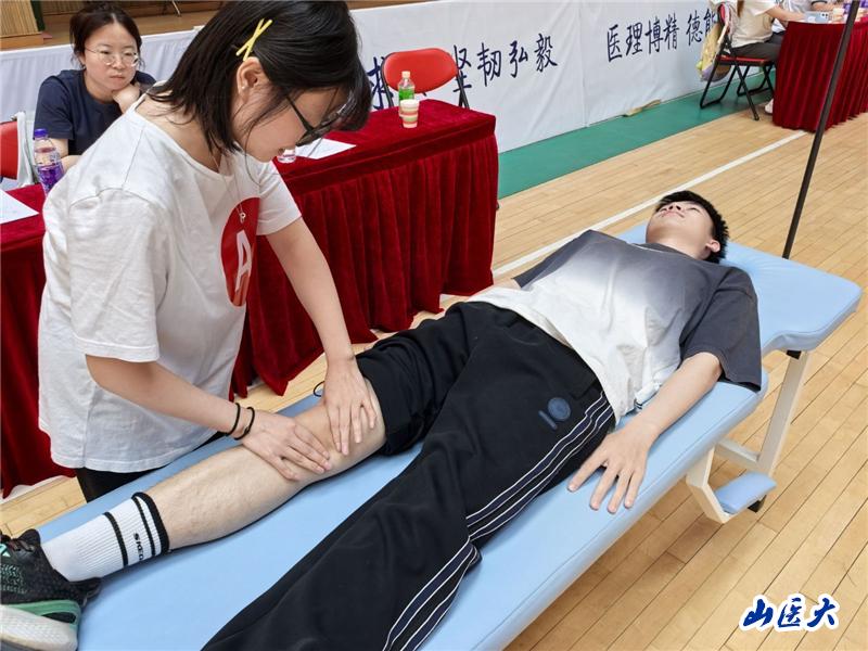 此次大賽特邀我校第三醫院、第五醫院、附屬太原中心醫院的多位專家擔任評委,體育教學部(運動康復系)全體教師全程參與,2022至2024級運動康復專業學生全程觀摩。競賽內容全面考察學生知識儲備、專業技術實操能力、臨床思維及溝通協作能力,涵蓋心肺復蘇、貼扎固定、肌肉骨骼康復、功能評定及運動處方等項目。賽場之上,選手們專注投入、操作規范,充分展現了扎實的專業功底和自信從容的青春風采。