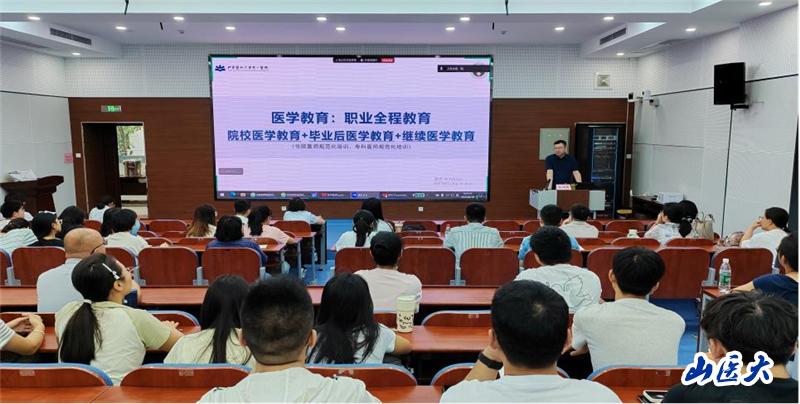 第一醫院副院長施熠煒以醫生職業全程教育與成長史為切入點開講思政第一課。他希望住培學員要以仁愛之心,筑牢醫德之基;以勤學為徑,精進醫學之術;以協作之力,共探溝通之道;以創新之舉,攻克醫學難題,同時勉勵學員始終以初心為底色、以責任踐使命,依托醫院豐厚的教學底蘊和平臺,以積極的心態、正確的態度開啟漫漫規培研學之路。