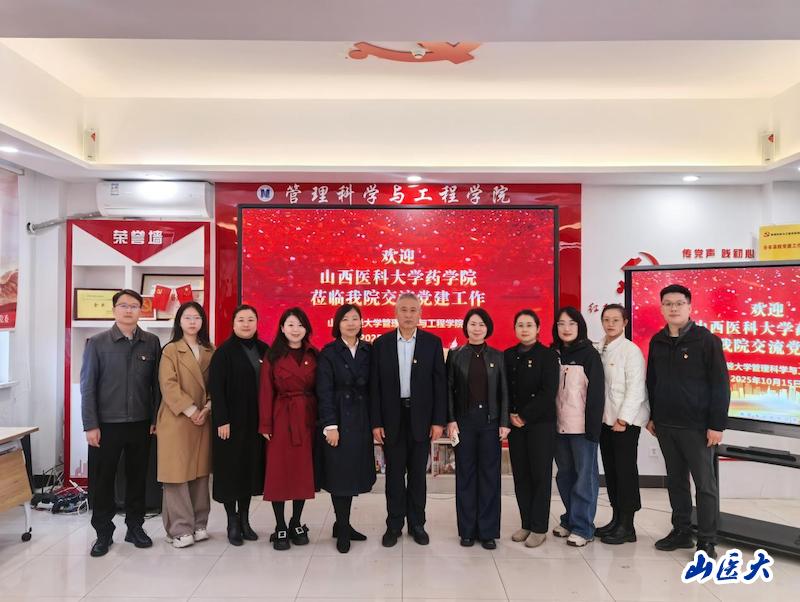 為進一步推進黨建工作規(guī)范提升專項行動提質(zhì)增效,10月15日上午,我校藥學院黨委書記李薇、副書記童玲帶領學院黨支部書記一行9人,赴“全國黨建工作標桿院系”山西財經(jīng)大學管理科學與工程學院開展黨建工作專題學習交流活動。