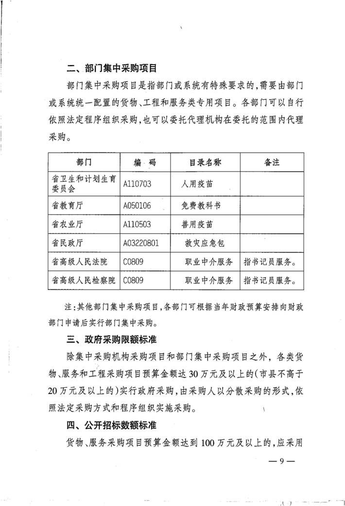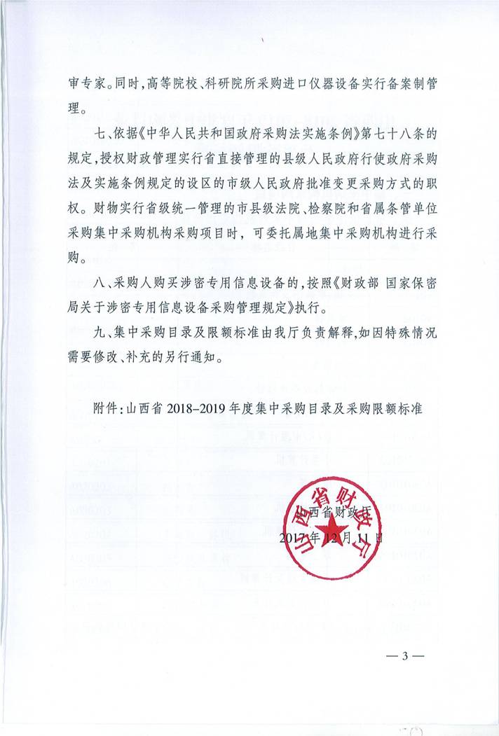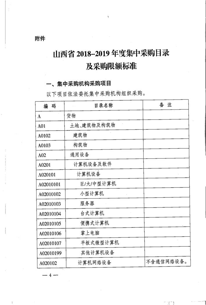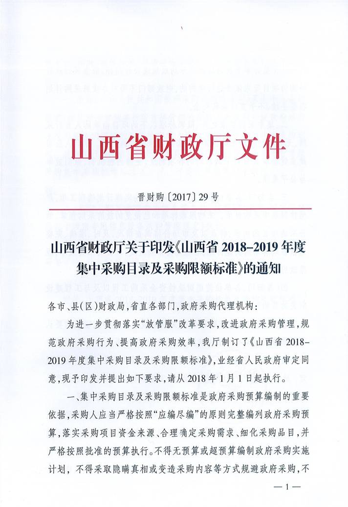 山西省政府采購2018-2019年度集中采購目錄及限額標準