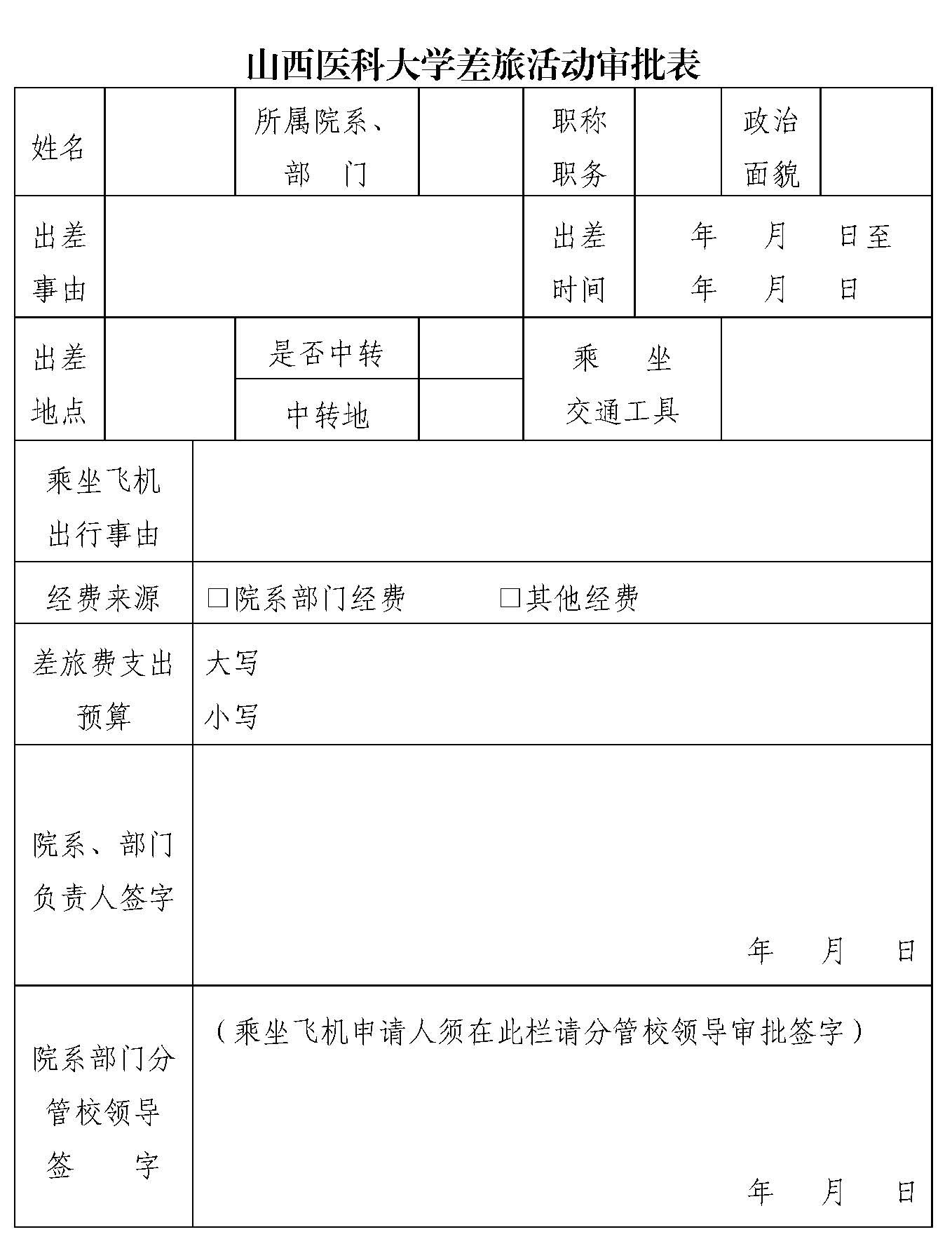 請從學校OA辦公系統“新建流程-財務管理-差旅費審批”中填寫該表,特殊情況可下載附件使用。