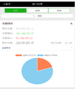 3、部門經(jīng)費(fèi)查詢結(jié)果如下圖所示: