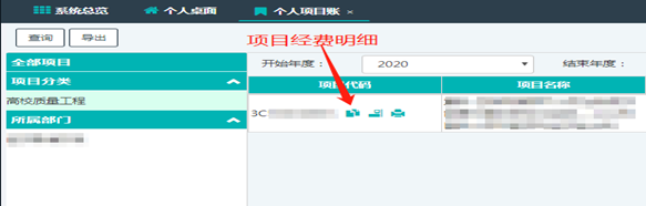 4、查詢項目經(jīng)費(fèi)明細(xì),點擊“項目代碼”后的第一個按鈕。查詢到的項目明細(xì)可以自行導(dǎo)出、打。縵巒: