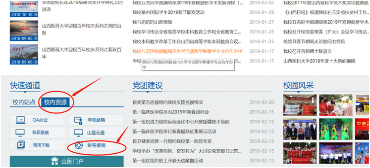 第一種:用戶打開瀏覽器,通過“c7c7.app官網(wǎng)首頁”-首頁左下角“快速通道”-“校內(nèi)資源”-“財務(wù)報銷”,登錄“c7c7.app智慧財務(wù)管理系統(tǒng)”平臺后即可查詢,如圖所示: