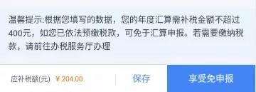 如果您需要補(bǔ)稅,但年度綜合所得收入不超過(guò)12萬(wàn)元,或者應(yīng)補(bǔ)稅額≤400元,且依法預(yù)繳稅額的,可享受免申報(bào)。