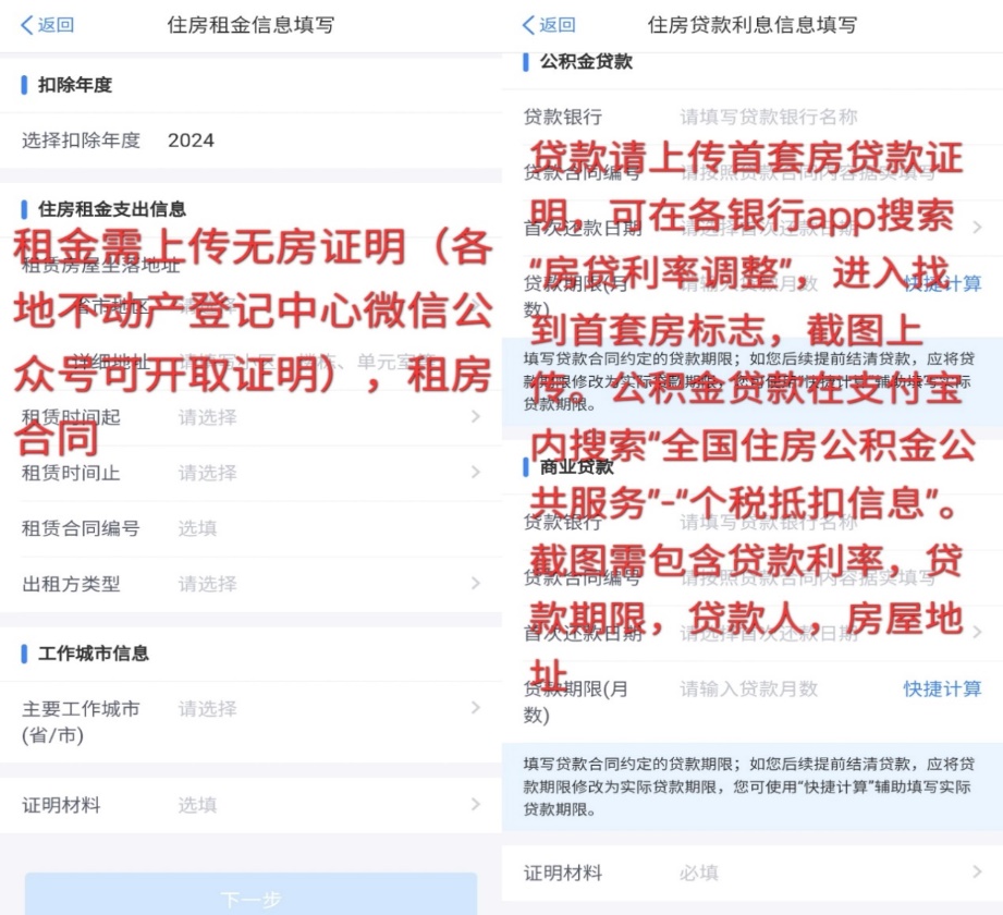 備注:太原市租房可扣除1500元;晉中市租房可扣除800元(學(xué)校中都校區(qū)周轉(zhuǎn)房公寓)。如:租賃房屋地址在晉中市,需上傳晉中市租房合同+無房證明+主要工作城市填寫晉中市,三者缺一不可。住房貸款利率如為2.85%被認(rèn)定為首套住房,即可享受專項(xiàng)附加扣除,若利率高于2.85%,則無法享受該專項(xiàng)附加扣除。