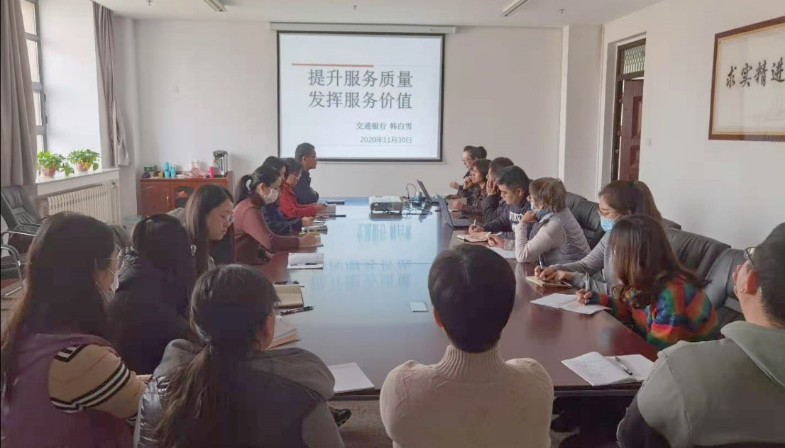 會議邀請了交通銀行山西省分行消保部高級業務經理韓白雪。韓經理以《提升服務質量、發揮服務價值》為題詳細講述了服務的價值、服務的核心,提高服務質量的關鍵因素、如何規范服務等內容,并在此基礎上介紹了交通銀行的具體服務規范和服務標準等相關經驗。